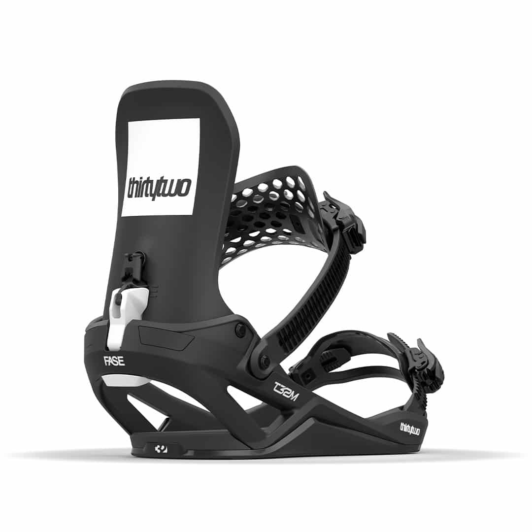 The Thirtytwo T32M FASE Snowboard Bindings are engineered for ultimate performance across all terrain, from powder to park. They offer unrivaled support, mind-bending flex, and uncompromising durability, providing the ultimate ride every time. The revolutionary, patented FASE Fast Entry System features the AutoBack for hands-free entry and exit, automatically closing when your boot enters and folding flat for convenience. The Faststrap ensures ultra-fast, one-handed strapping, while the Locked-In Toe Strap allows for effortless, set-and-forget adjustments. This rider-trusted system provides premium performance, all-conditions durability with a lifetime warranty on system-specific parts, and universal compatibility, making strapping in intuitive and quick whether stationary or on the go.