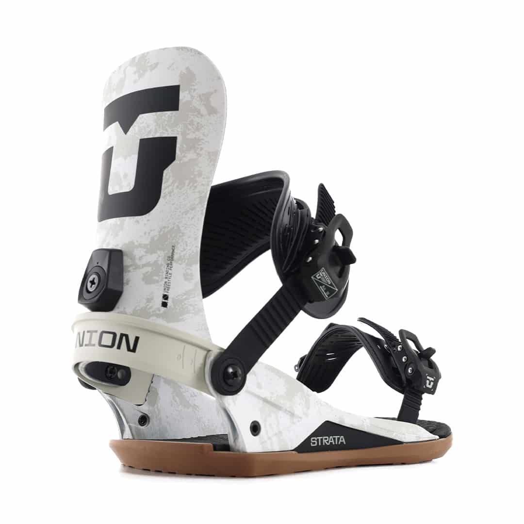 The Union Strata Snowboard Bindings are Union's #1 park and freestyle snowboard binding, a true fan favorite. Designed for park rats, pow surfers, and freestyle aficionados, their soft, surfy, and shock-absorbing ride feel allows you to unlock your snowboard's true flex, taking your tricks and style to the next level. This design provides maximum control and creativity for grabs, spins, and jibs, while also ensuring a comfortable cruising experience across the entire mountain, performing exceptionally well on powder boards.