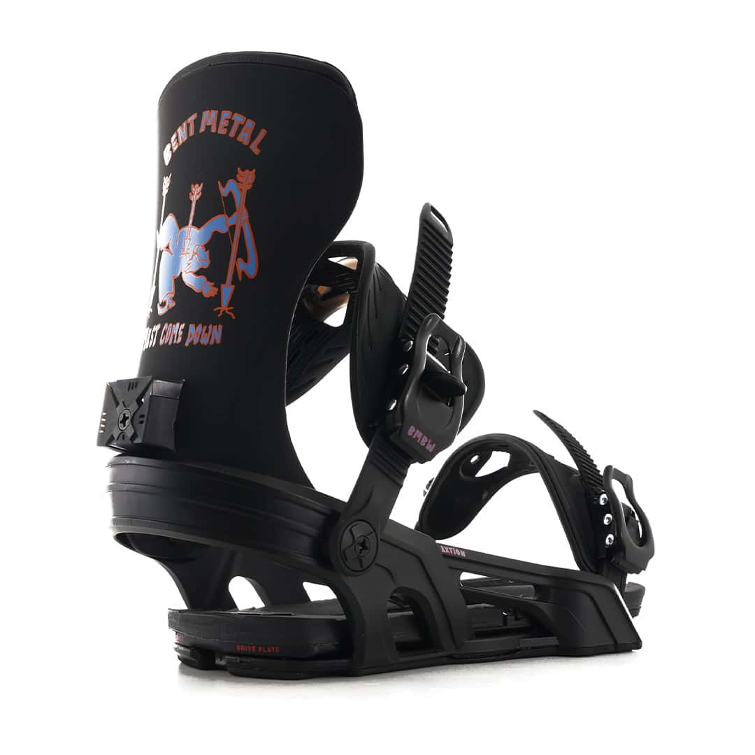Built for versatility and performance, the Axtion snowboard bindings are a favorite among all-terrain riders. The Axtion bindings boast a comfortable and supportive design that will keep you riding strong all day long. For a precise and responsive ride, the Axtion features a uni-body nylon chassis and a solid asymmetric high back to increase rigidity for aggressive riding and high-speed stability, allowing you to carve with confidence and stomp landings with ease. The Magnesium Fiber Drive Plate transmits precise edge control to your board in any condition, while the co-extruded bottom sheet ensures superior durability.
